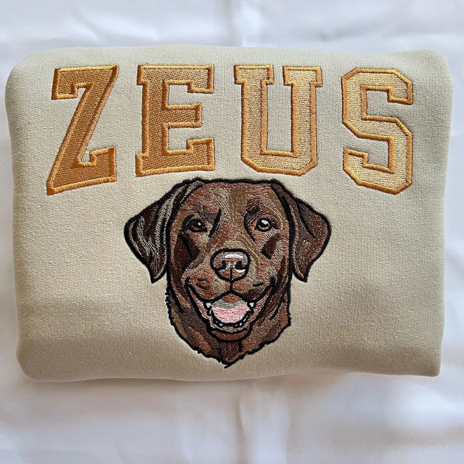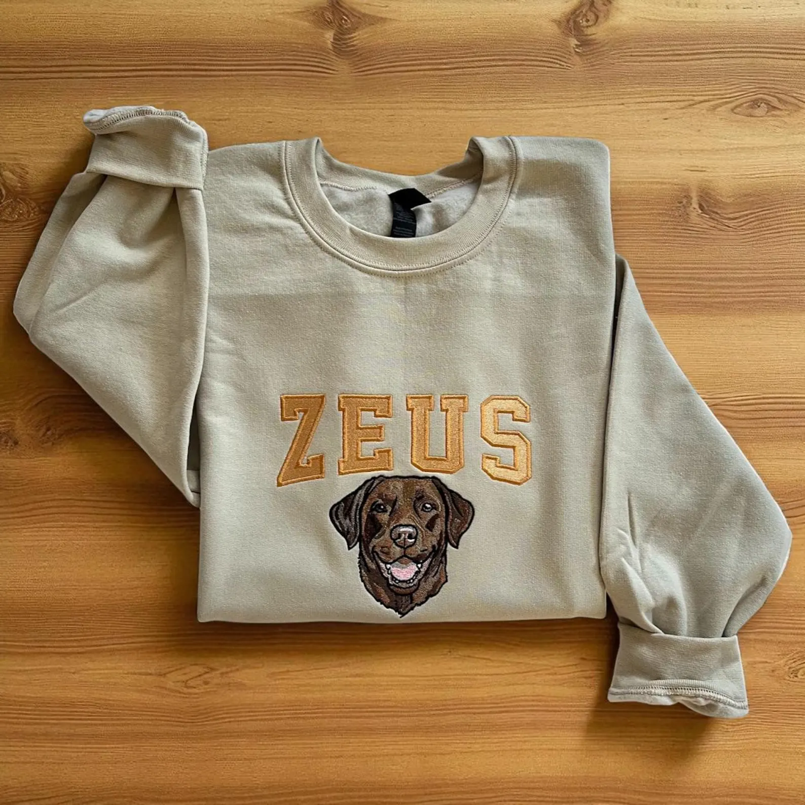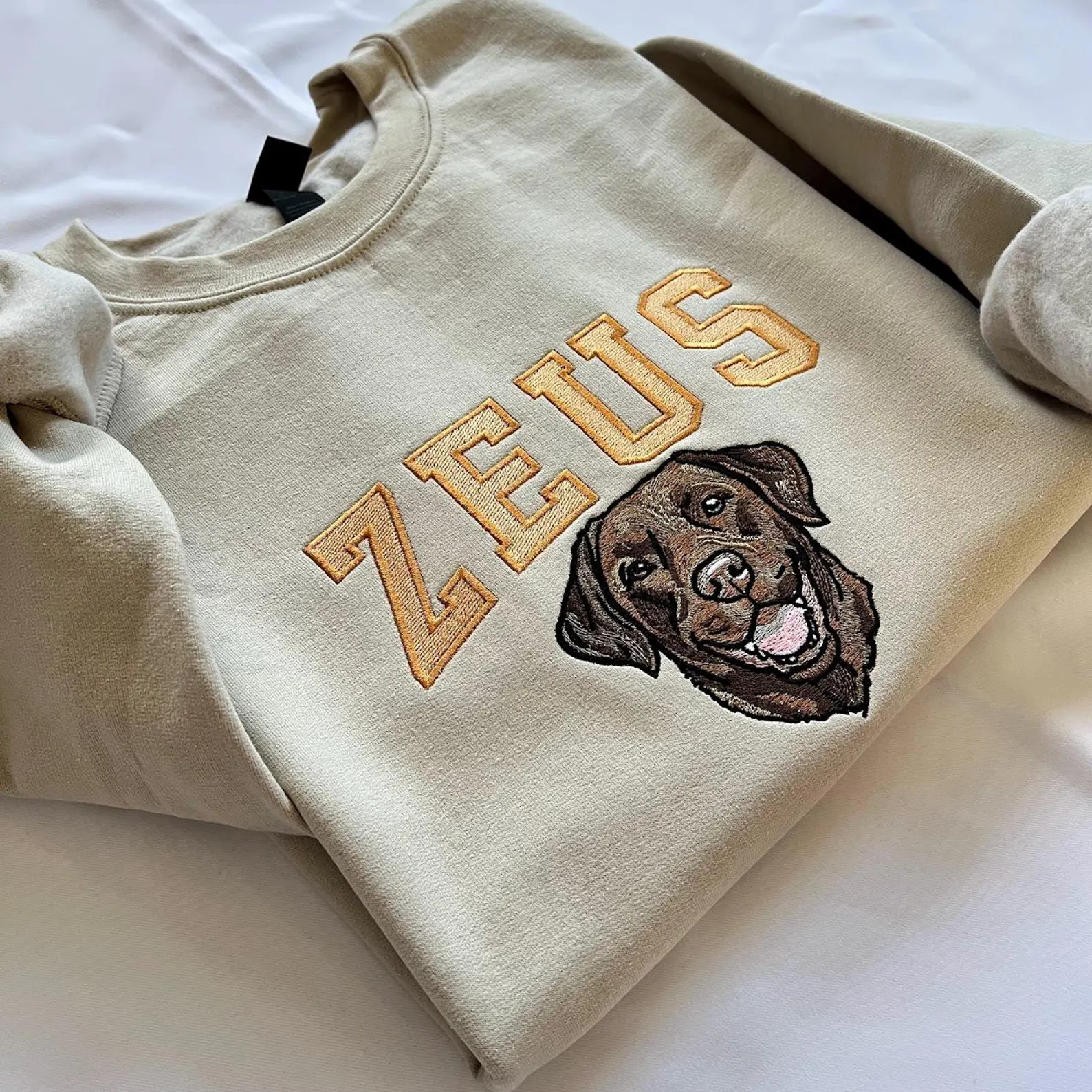 Embroidered Pet Portrait Sweatshirt: Custom Varsity Name, Dog Mom Gift